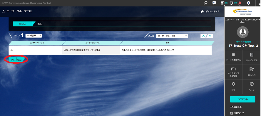 以下の手順でビジネスポータルを参照いただくと、運用担当者に管理対象のサービス情報のみへのアクセス制御設定ができます。