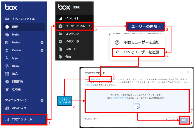 5. 「Box CSVテンプレート」をクリックし、ファイルをダウンロード。