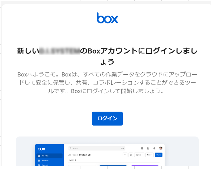 管理者が新規ユーザーを追加後、対象ユーザー宛てにBox