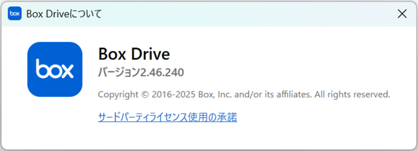 - Box Driveバージョン番号(「Box Driveについて」から確認)