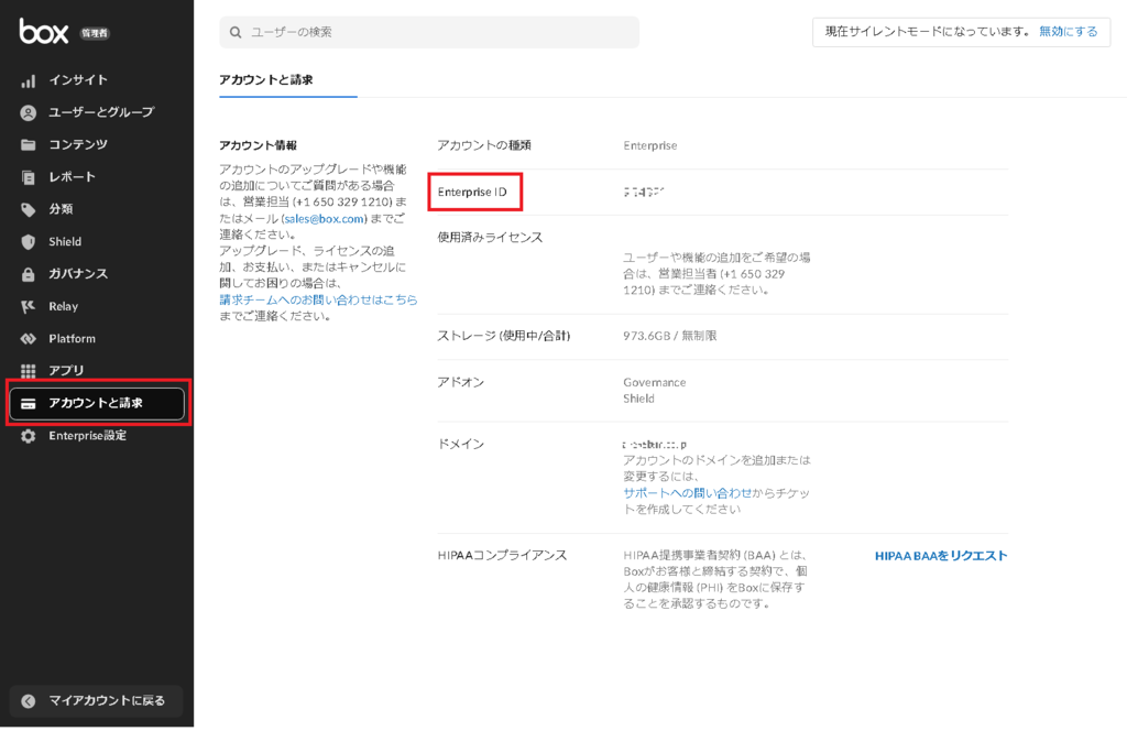 ・Boxの管理者または共同管理者であれば、[管理コンソール]の[アカウントと請求]における[アカウント情報]において、EIDを確認することができます。