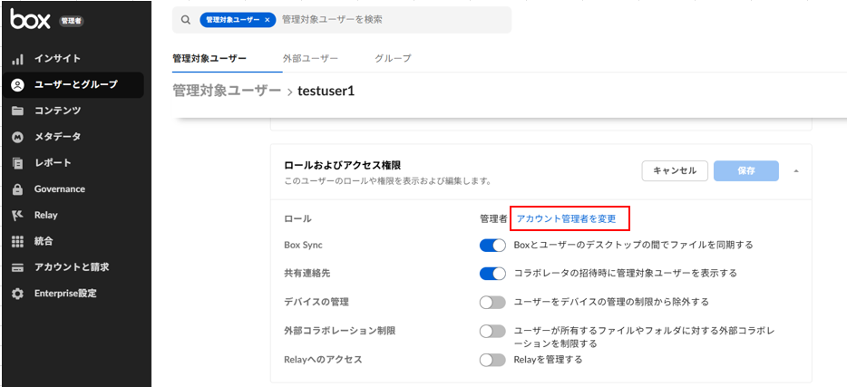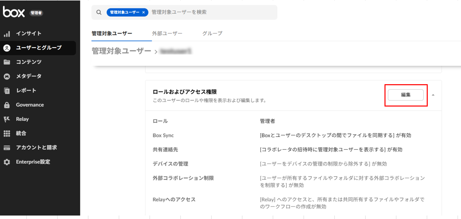 各ロールの詳細な権限の違いは、Q7: Box管理者・共同管理者・グループ管理者の違いと権限について教えてくださいをご覧ください。