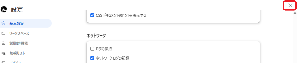 Microsoft Edgeのネットワークログの取得方法は次の通りです。