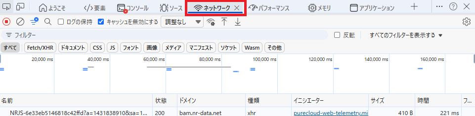 8.ネットワークを開いたまま、調査中の問題を再現させます。