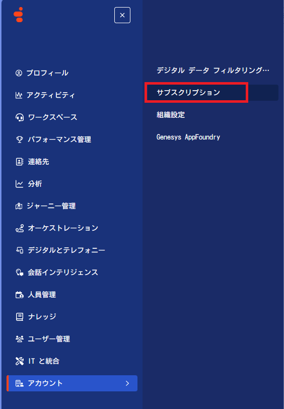 1.メニュー > アカウント > サブスクリプション をクリック