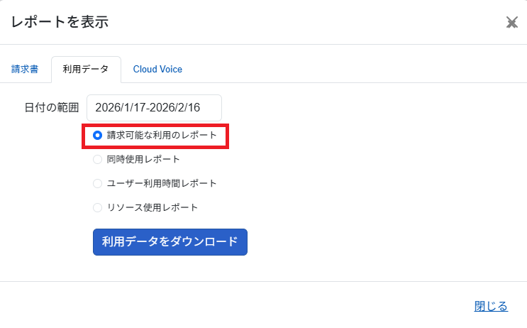 4.「請求可能な利用のレポート」を選択