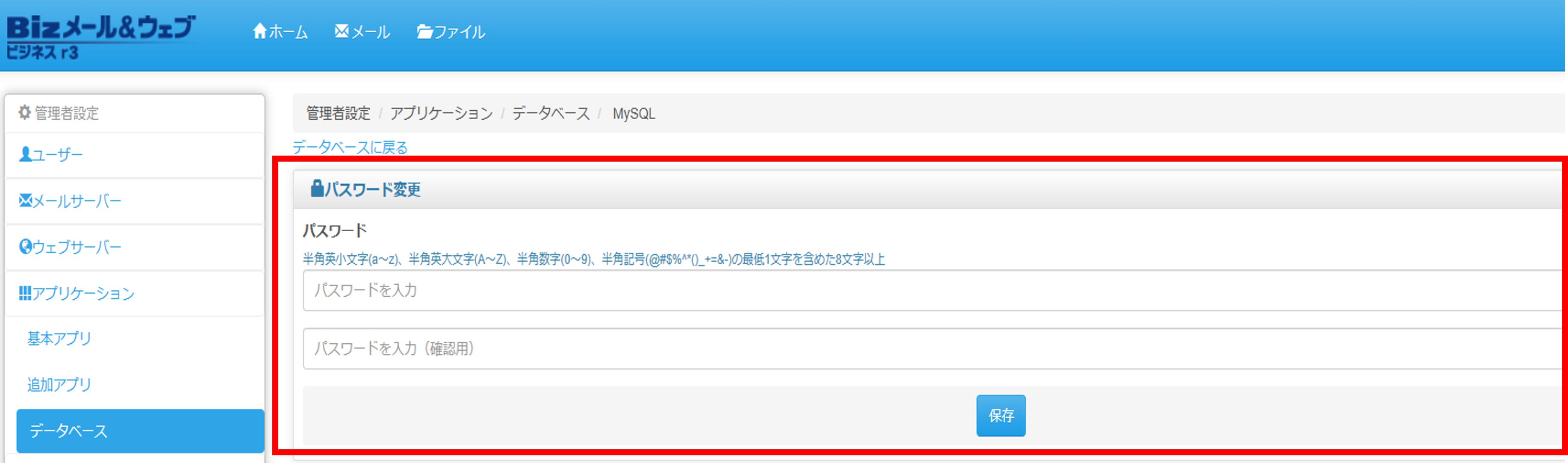 ※MySQLを利用しているアプリケーションがある場合は、MySQLのパスワードを変更すると正常にご利用できなくなります。