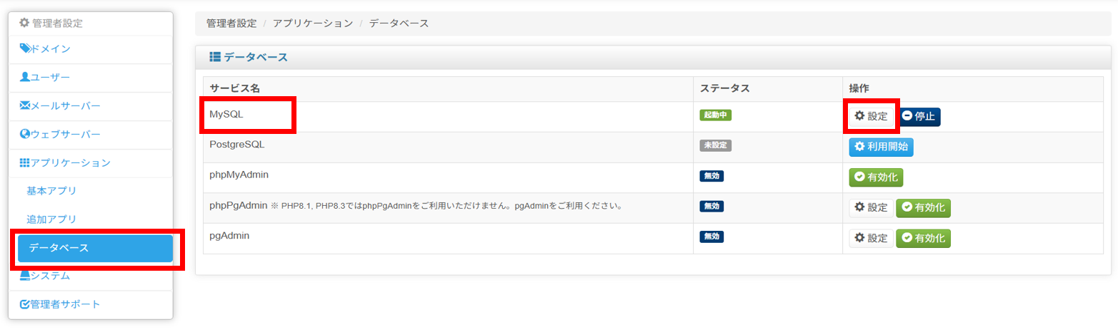 3. MySQLやphpMyAdminの利用方法などはサポート対象外となります。