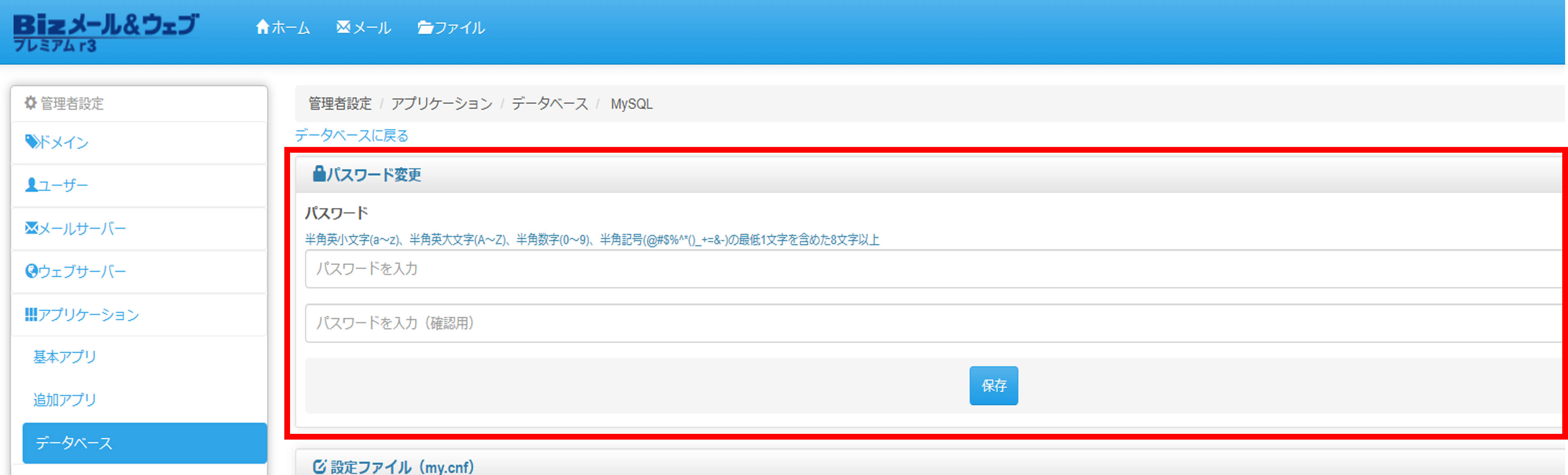 ※MySQLを利用しているアプリケーションがある場合は、MySQLのパスワードを変更すると正常にご利用できなくなります。
