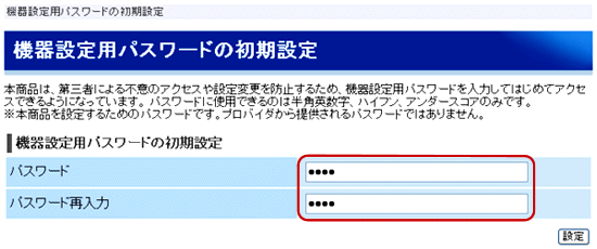 | パスワード再入力 | 機器設定用パスワードとして任意の文字を再度入力 |