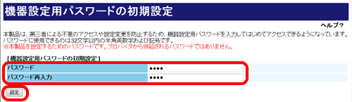 | パスワード再入力 | 機器設定用パスワードとして任意の文字を再度入力 |