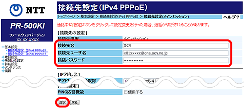 | 接続パスワード | OCN接続用パスワード(認証パスワード)を入力 |