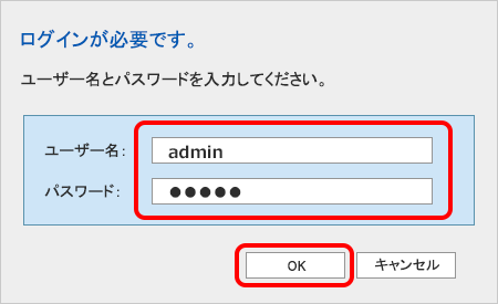 | パスワード | 初期設定で設定したログインパスワードを入力 |