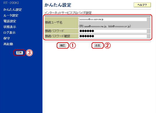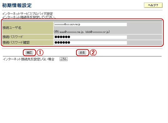 | 接続パスワード確認 | OCN接続用パスワード(認証パスワード)を再度入力 |