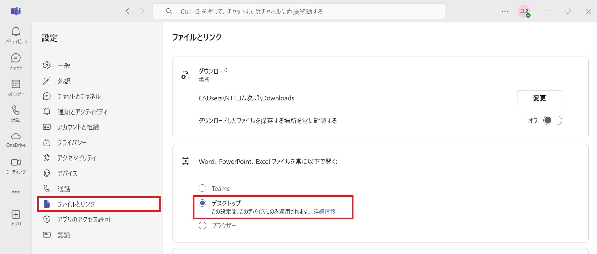 TeamsでOffice ファイルを開く際に既定でデスクトップアプリを開きたいです
